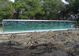 El Memorial, de gran simplicidad, abstracto, y con un fuerte contenido metafórico, se compone de un rectángulo en donde se descarna la superficie hasta llegar a la roca viva. Al descubrir ese afloramiento rocoso como soporte del espacio destinado a la memoria, estalla su significado como un símbolo de la verdad que se busca. Dos muros de vidrio constituyen el soporte material donde se colocan los nombres de los desaparecidos, conformando un espacio “interior” que comparte la espacialidad exterior, logrando un ámbito contenido. La obra se articula con pocos elementos que se interrelacionan para componer un lugar dentro del gran parque.